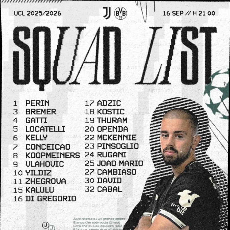 9月16日讯 北京时间明天凌晨3点,尤文将在欧冠比赛中主场对阵多特。尤文公布了此役的球员名单。